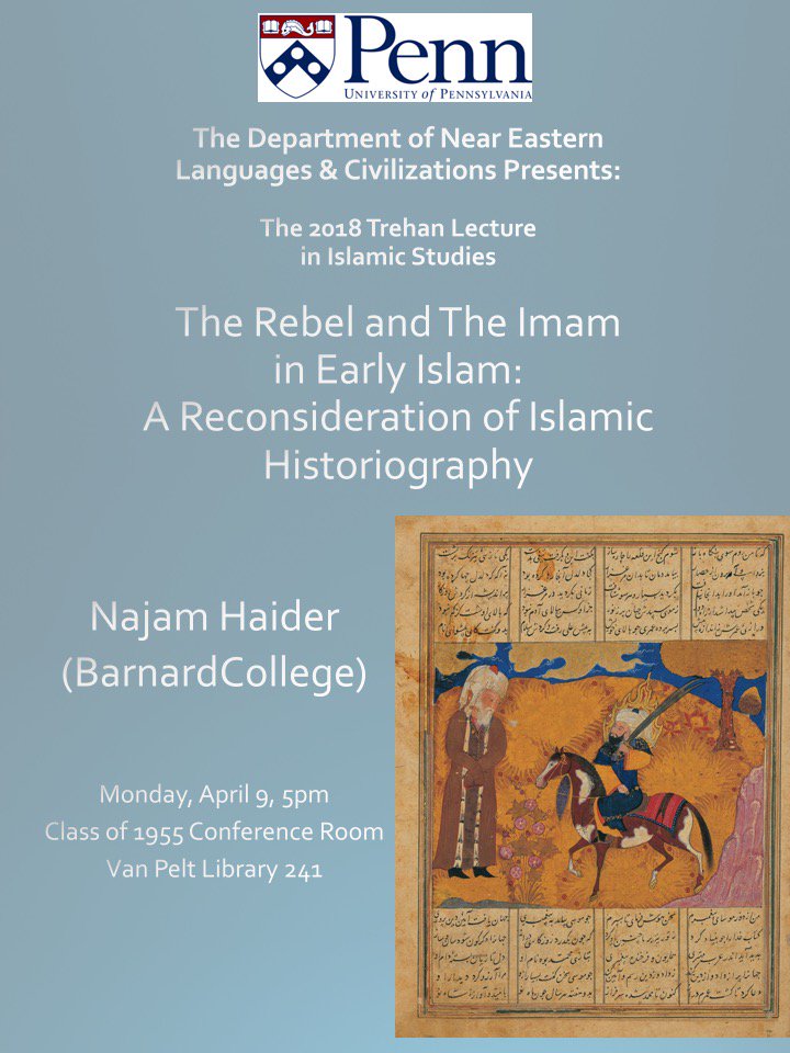 “The Rebel and the Imam in Early Islam: A Reconsideration of Islamic Historiography” – Najam Haider (Barnard College)